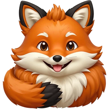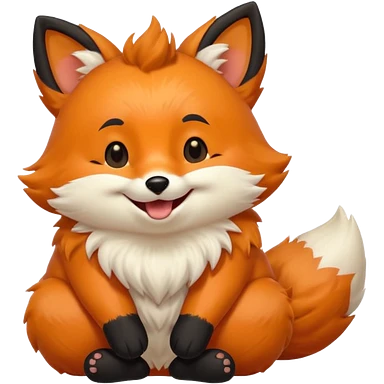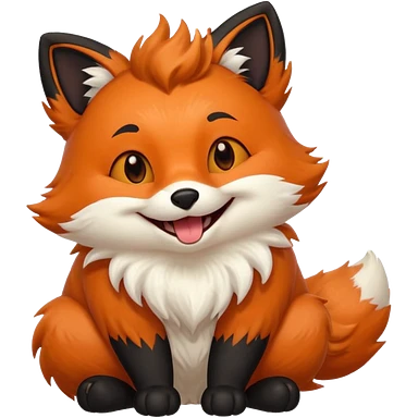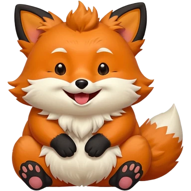 Floofy the Creampuff fox blackish away laughing, chubby. Black paws orange color emoji