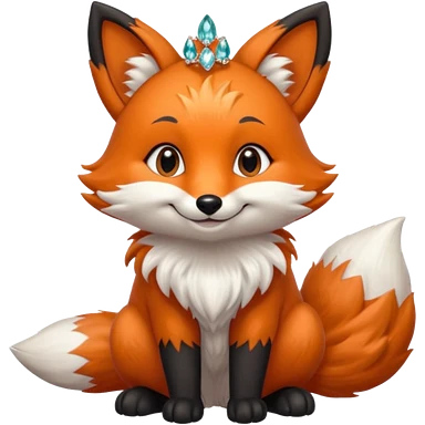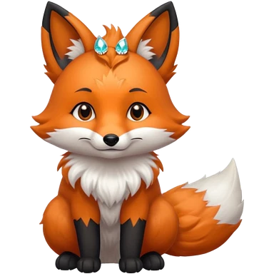 Floofy the Creampuff fox blackish gray fur color chubby Black paws orange color 3 tailsCrystals on the head, tails and Back emoji