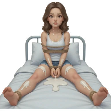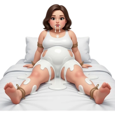 30 year old girl chubby, thick white liquid all over, bound body, ,(((spread your legs))), cute face, face, realistic face, petite body, drooling out of mouth, on bed, , not wearing clothes emoji