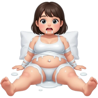 30 year old girl chubby, thick white liquid all over, bound body, ,(((spread your legs))), cute face, petite body, drooling out of mouth, on bed, , not wearing clothes and butt in the air emoji