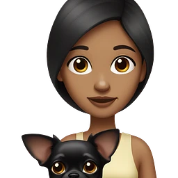 Brunette girl with blue eyes holding a black chihuahua emoji