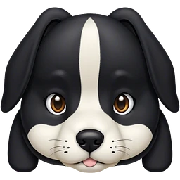 Black dog with small white strip on nose, semi sticked up ears, bordercollie features emoji