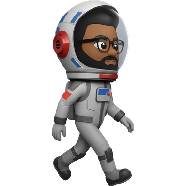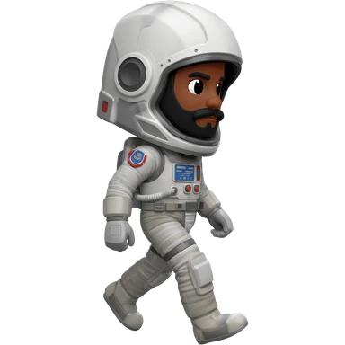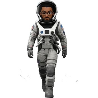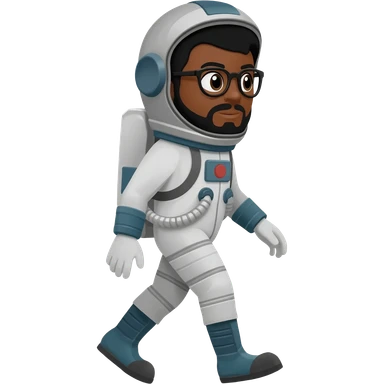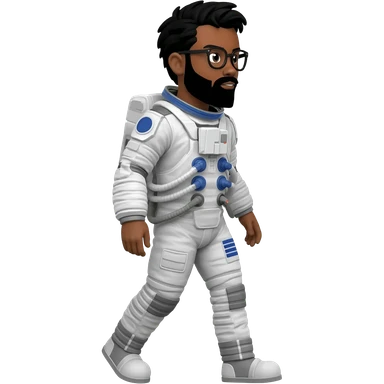 astronaut walking space brown skin, black eyes, glasses and beard smiling black hair show body emoji