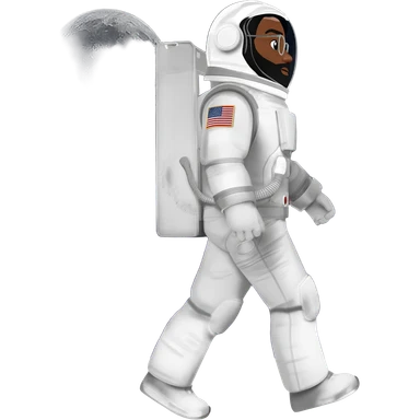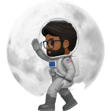 astronaut moon on back with helmet walking space brown skin, black eyes, glasses and beard black hair show body emoji