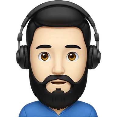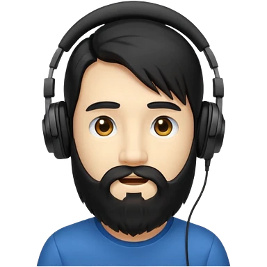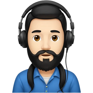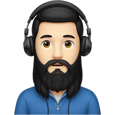 Boy with long black hair and a big beard wearing headphones emoji