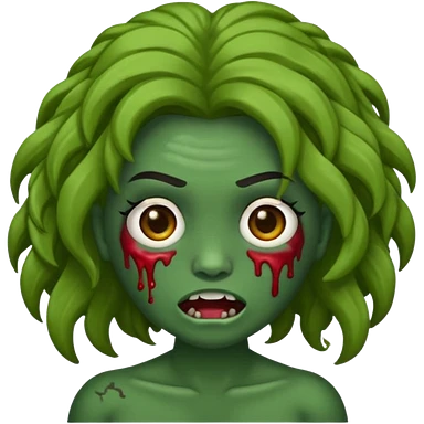 Faça um emoji de zumbi que se pareça comigo. Categorias: cabelo ondulados pretos, pele verde, usa aparelho! Personagem: feminina. emoji