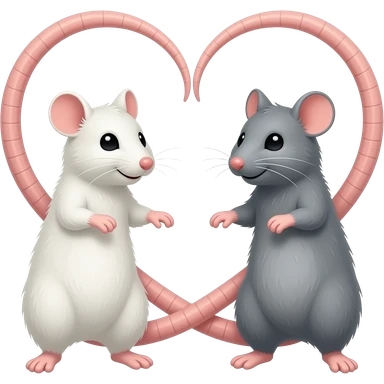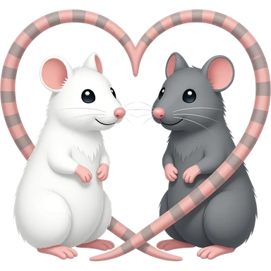 Две крысы, белая и серая , хвостики которых образуют сердечко emoji