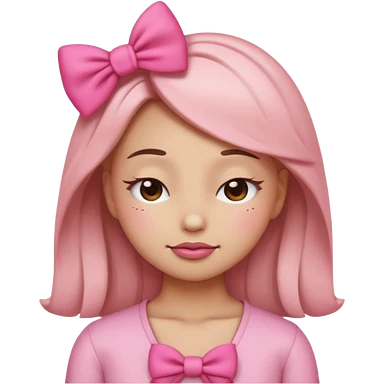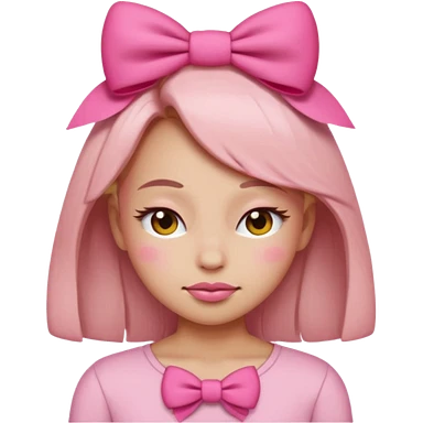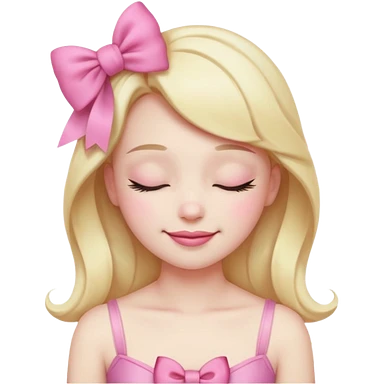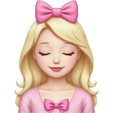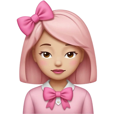 emoji coquette with a pink bow, closed eyes, confident smile, soft aesthetic emoji