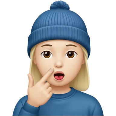 o um imoji com uma touca na cabeça e com um dedo na boca emoji