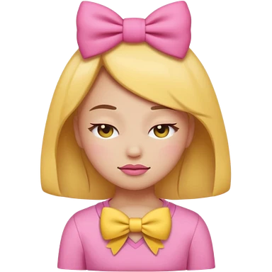 sassy girly emoji with pink bow, closed eyes, confident smirk emoji