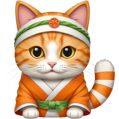cat with its paws crossed wearing a hat made out of sushi emoji