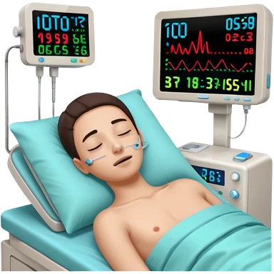 a PATIENT waking up before a surgery sleeping. And monitors with vitals and numbers emoji