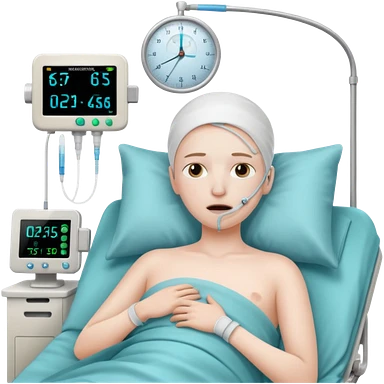a PATIENT waking up before a surgery, with monitors and sleeping emoji