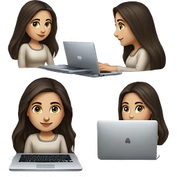 Beautiful Armenian girl, brunette, long hair, Black eyes, typing on laptop emoji