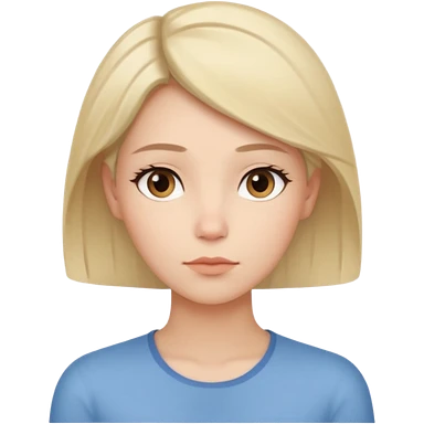 female human avatar, thoughtful expression, calm mood, sensitive personality, neutral face, minimal style, simple hair, no accessories, professional, clean, soft tone emoji