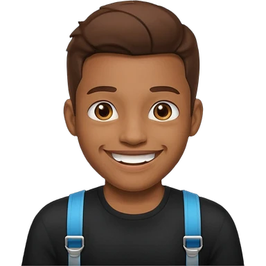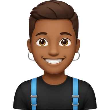 make this images have braces, no glasses,a black shirt, and brown skin emoji