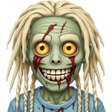 zombie with dreads with braces smiling emoji