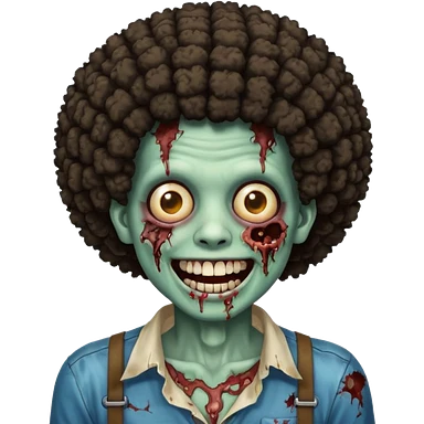 zombie with afro smiling with braces emoji
