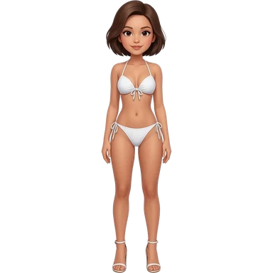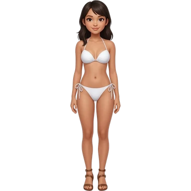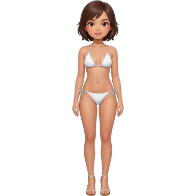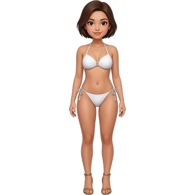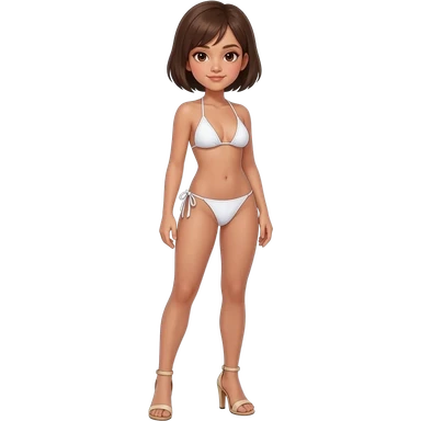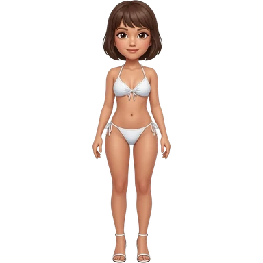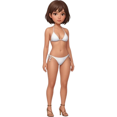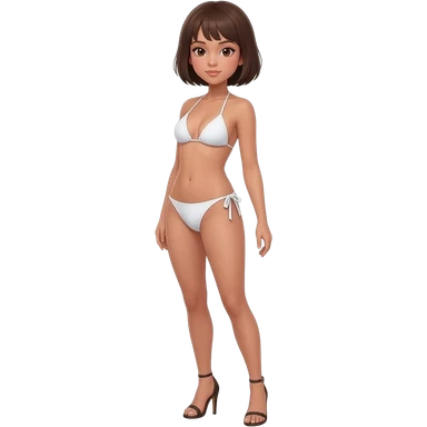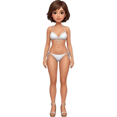 Filipino girl white push up bikini string full body slim stand straight with high heels sandals brown short hair emoji