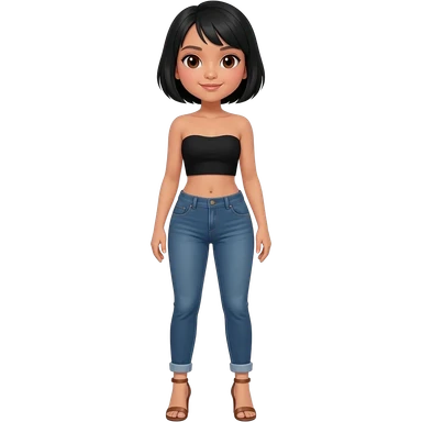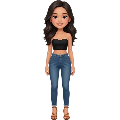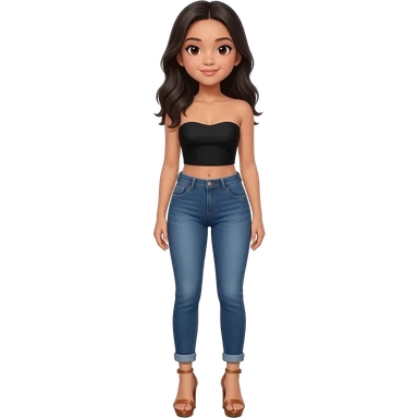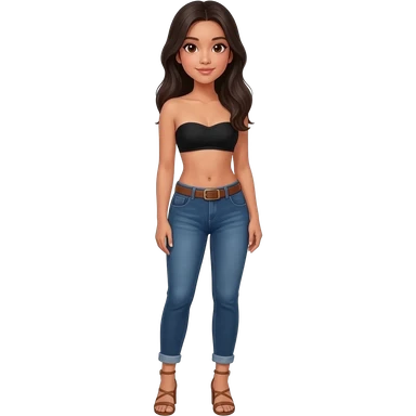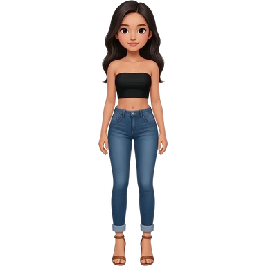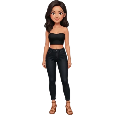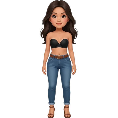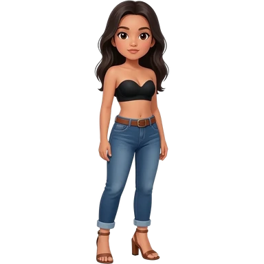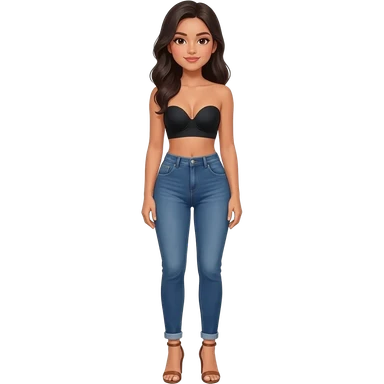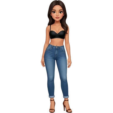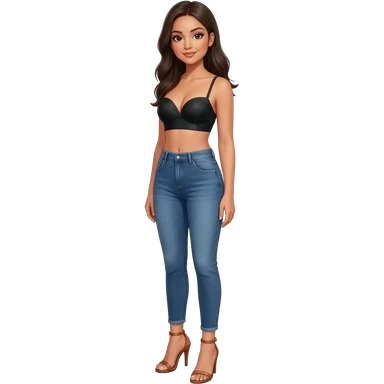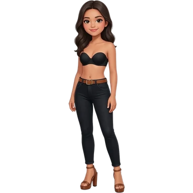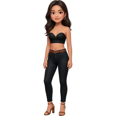 Filipino girl black bra strapless top and high waisted black jeans with feet stand straight body wear high heels sandals brown stand straight emoji