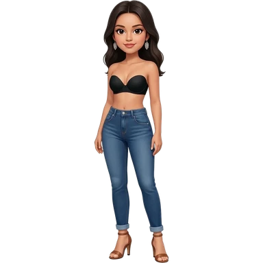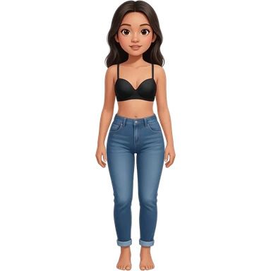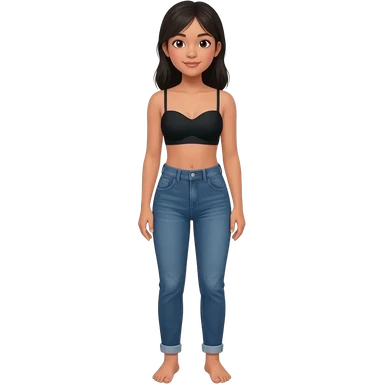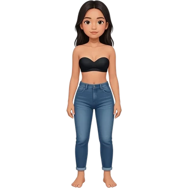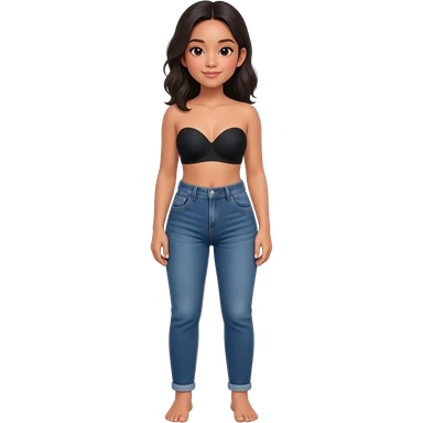 Filipino girl black bra strapless top and high waisted denim jeans with feet stand straight body emoji