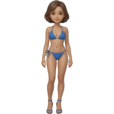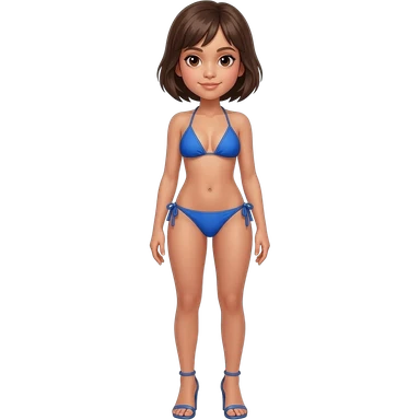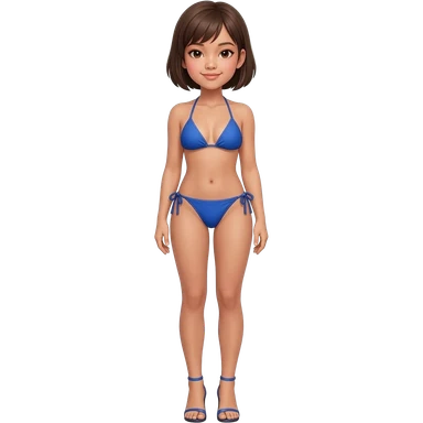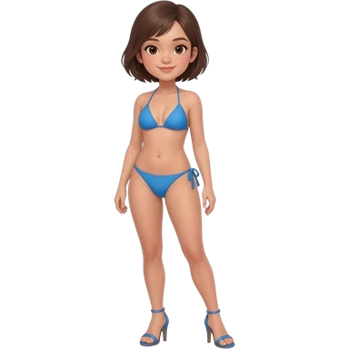 Filipino girl real blue triangle top bikini and tie tanga bikini bottom full body slim stand straight with high heels sandals brown short hair emoji