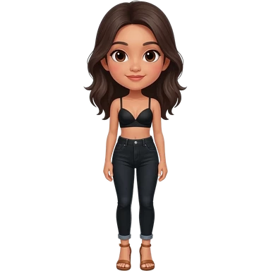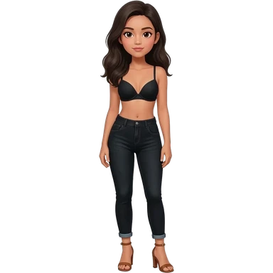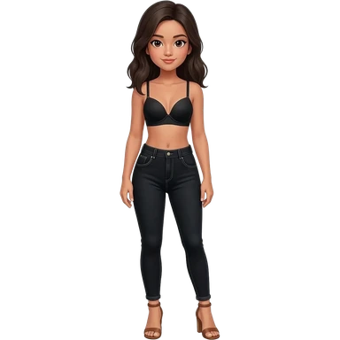 Filipino girl black bra top and high waisted black jeans with feet stand straight body wear high heels sandals brown stand straight emoji