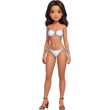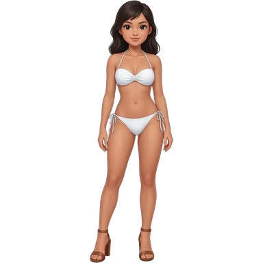 Filipino girl white push up bikini string full body slim stand straight with high heels sandals brown emoji
