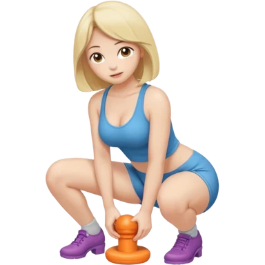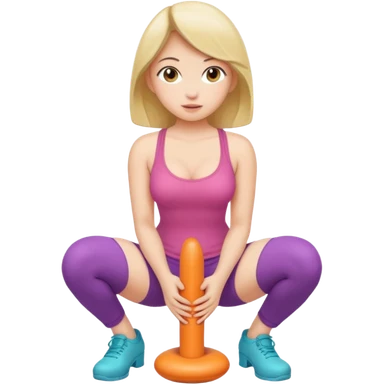 Full body. Naked girl. squatting. Squatting onto dildo. Positioned over dildo. Naked girl vaginally penetrated by dildo emoji