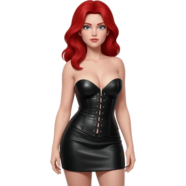 sexy mistress, red hair, slutty outfit. curvy body. pale skin. blue eyes. chubby. emoji