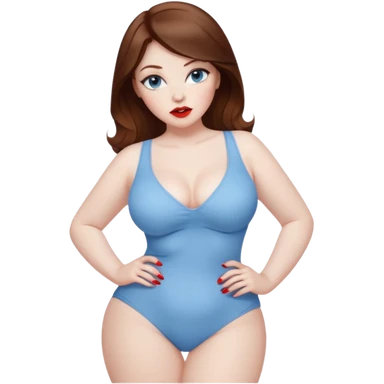 sexy mistress, brown hair, slutty outfit. curvy body. pale skin. pale blue eyes emoji