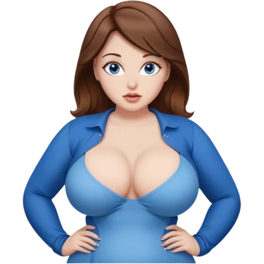 sexy mistress, brown hair, slutty outfit. curvy body. pale skin. blue eyes. oversized breasts. emoji