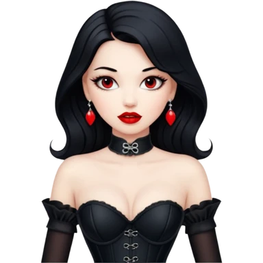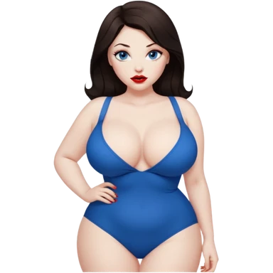 sexy mistress, dark brown hair, slutty outfit. curvy body. pale skin. blue eyes. oversized breasts. emoji