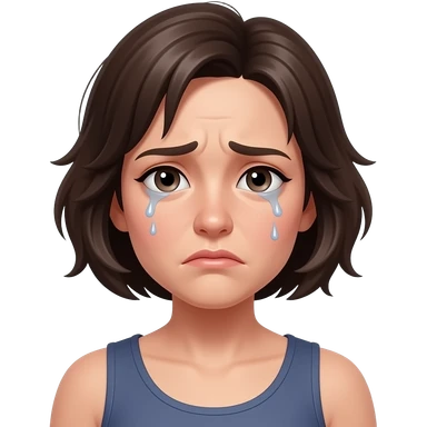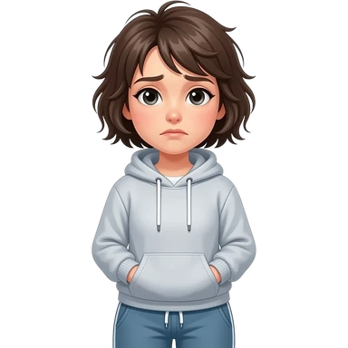 disheveled ungroomed woman with short hair and sweats less sad emoji