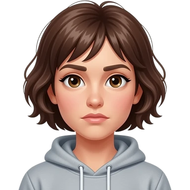 disheveled ungroomed woman with short hair and sweatshirt emoji