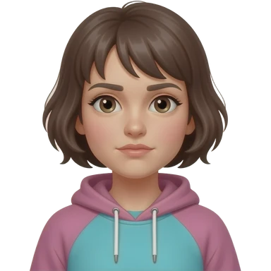 disheveled ungroomed woman with short hair and coloured sweatshirt emoji