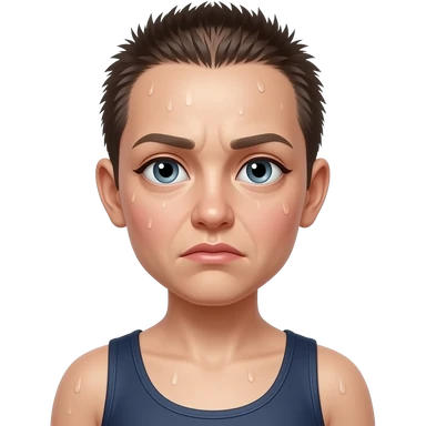 disheveled ungroomed woman with short hair and sweats less refined make up emoji