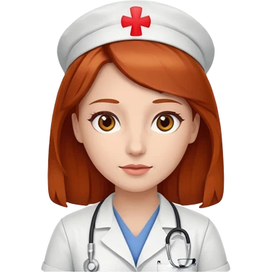 nurse with long dark strawberry blonde hair with brown eyes emoji