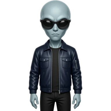 Yes perfect this emoji with those cloths, but instead put black shades and make it a alien with no beard emoji