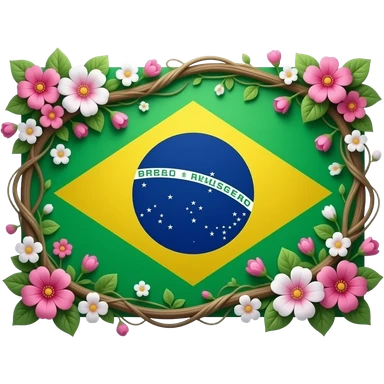 Lots of pink and white vines and flowers wrapped around the Brazil flag emoji