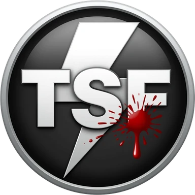make a black and white lightning logo with the letters TSF without a background and stained with blood emoji