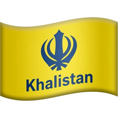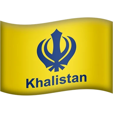Flag is full yellow and in the middle a sikh logo khanda in blue color and botton of khanda write khalistan emoji