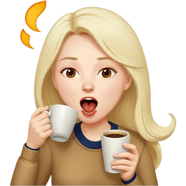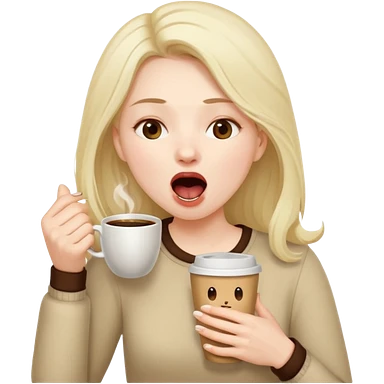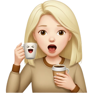 can you make her now look without laptop but having a coffee cup in her head with мешками под глазами и зевающую emoji