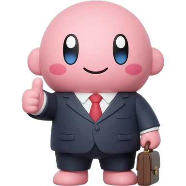 super duper happy excited plush like kirby goving a thumbs up dressed up for business holding a briefcase emoji