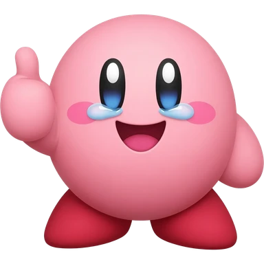 super duper happy excited plush like kirby giving a thumbs up with happy teary eyes emoji