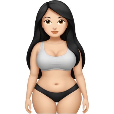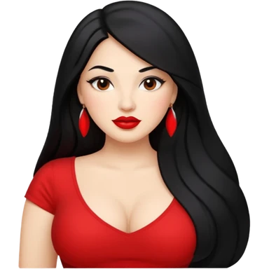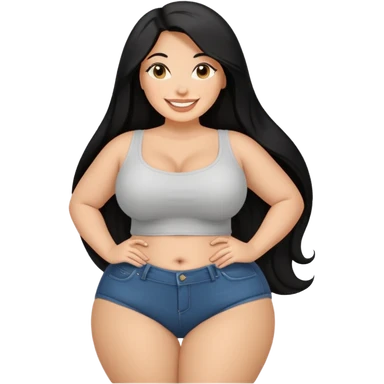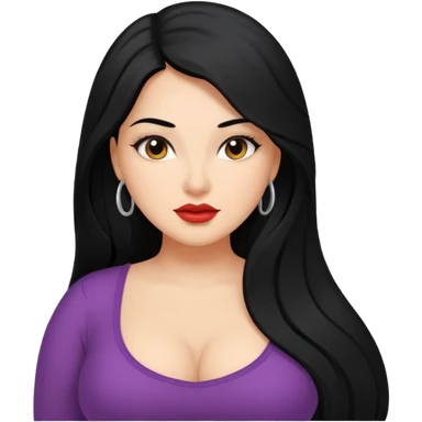 Curvy white latina woman with long back hair with big ass emoji