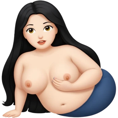 Curvy white woman with long back hair masturbating emoji