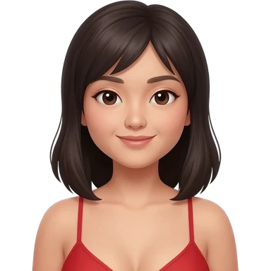 Topless, slightly curvy, Asian woman. Topless red panties emoji