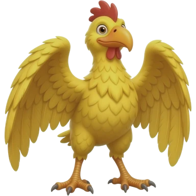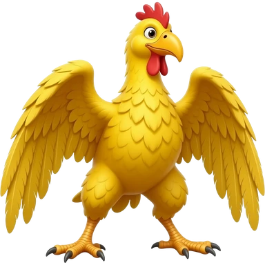 A yellow chocobo stands on two powerful, muscular legs that end in three-toed talons built for high-speed sprinting. Its body is covered in bright yellow feathers, featuring large wings that help with balance while its long, flexible neck supports a head with a prominent, curved beak. emoji