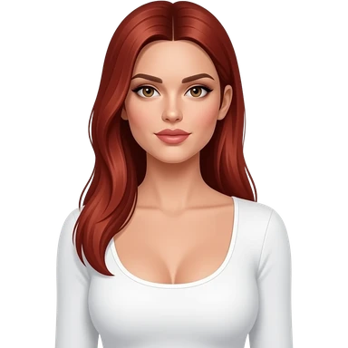 Beautiful woman model large breasts with brown monolid thin eyes white skin long straight red hair model white long sleeve top Kendal Jenner fully naked emoji